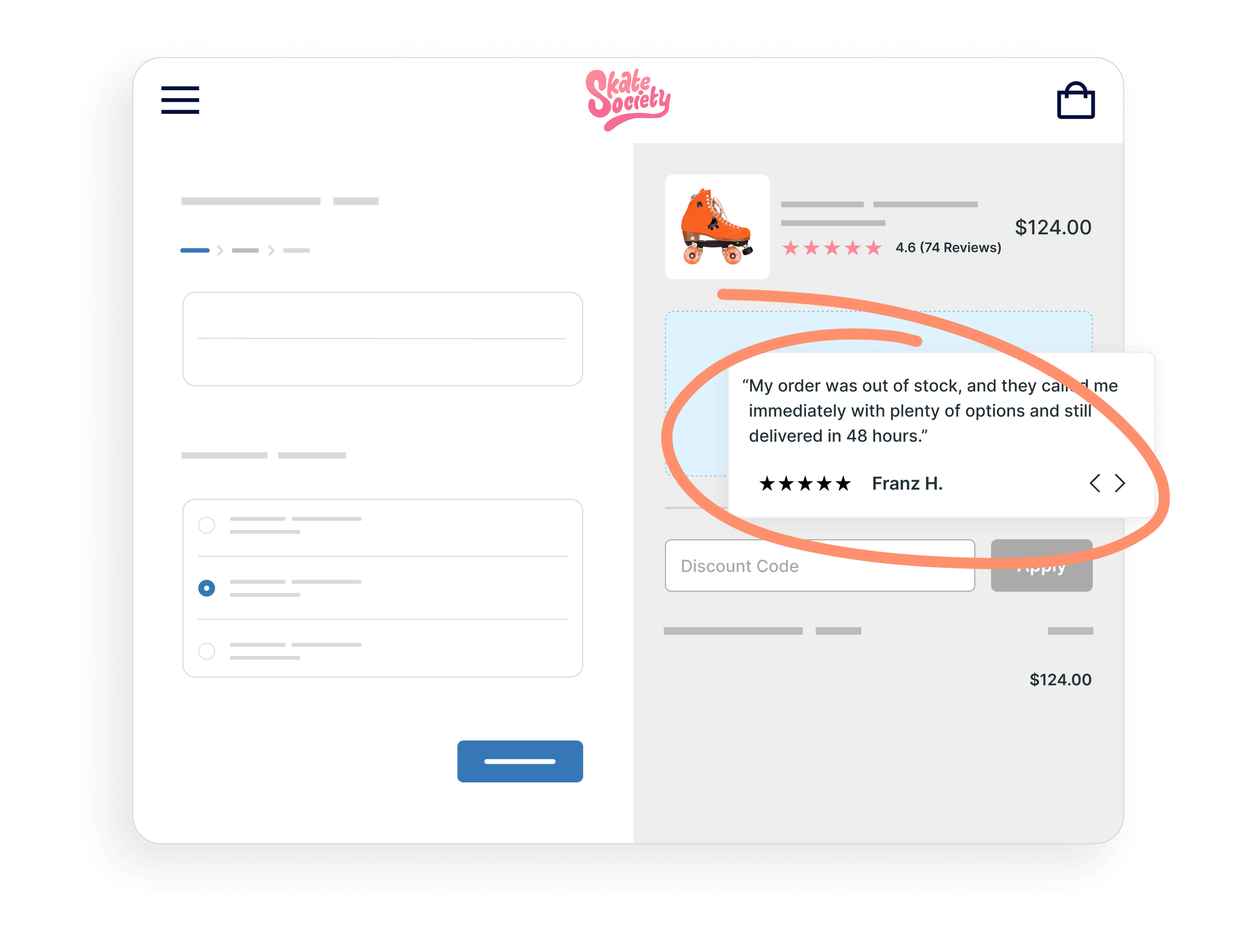Place Review Nuggets where they have the biggest impact, on the checkout page. Carts are abandoned mostly from checkout, either due to unexpected costs or lack of trust.
